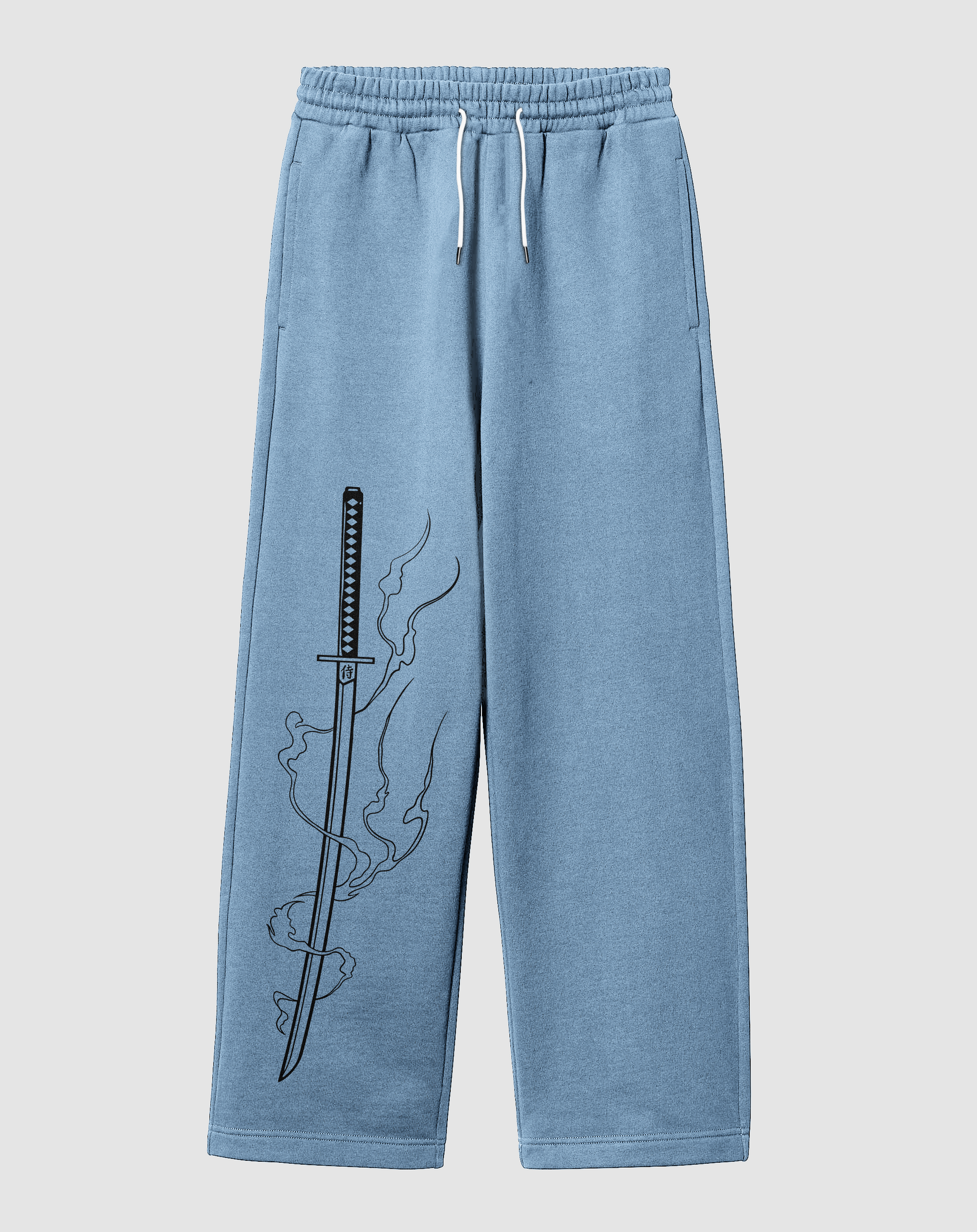 Katana Baskılı Açık Mavi Rahat Kalıp Arka Cepli Eşofman Altı